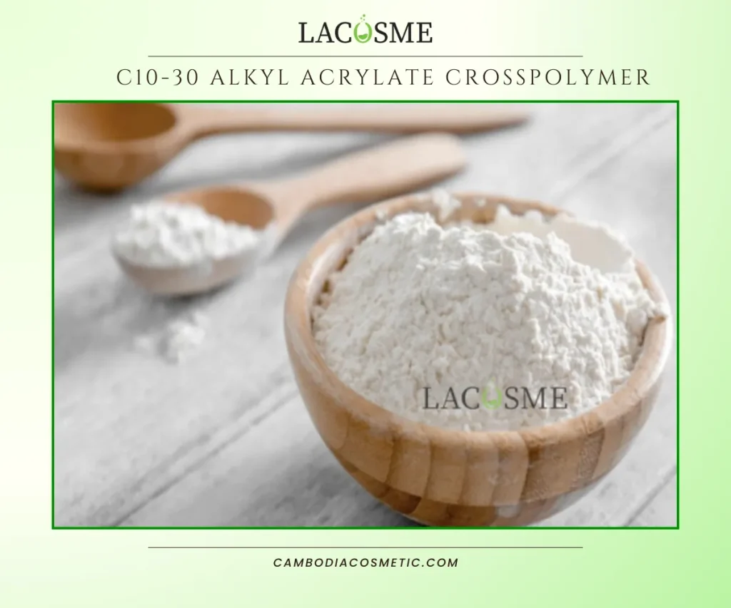 អំពីគីមីវិទ្យា C10-30 Alkyl Acrylate Crosspolymer ជា polymer acrylate ដែលមានសមាសភាពជាច្រើនជាមួយ alkyl chains ចន្លោះ 10–30 carbon atom, ជួយបង្កើតរាងកាយ និងទន់លើស្បែក។