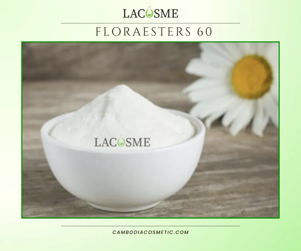 Floraesters 60 គឺជាសារធាតុកក និងកែវាយនភាព (Thickener & Texture Structuring Agent) ដែលត្រូវបានប្រើក្នុងរូបមន្តគ្រឿងសំអាង និងផលិតផលថែរក្សាស្បែក។ វាមានសមត្ថភាពបង្កើតភាពខាប់យ៉ាងទន់ភ្លន់ និងរក្សាសមាសភាពឲ្យស្មើ ដោយមិនធ្វើឲ្យផលិតផលមានអារម្មណ៍ធ្ងន់ ឬជាប់ខ្លាញ់។ ចំណុចពិសេសរបស់ Floraesters 60 គឺការធ្វើការប្រកបដោយស្ថិរភាព និងភាពសម្របសម្រួលល្អជាមួយសារធាតុផ្សេងៗក្នុងរូបមន្ត។